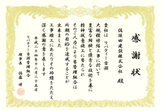 リバティー古淵様より感謝状を頂きました。